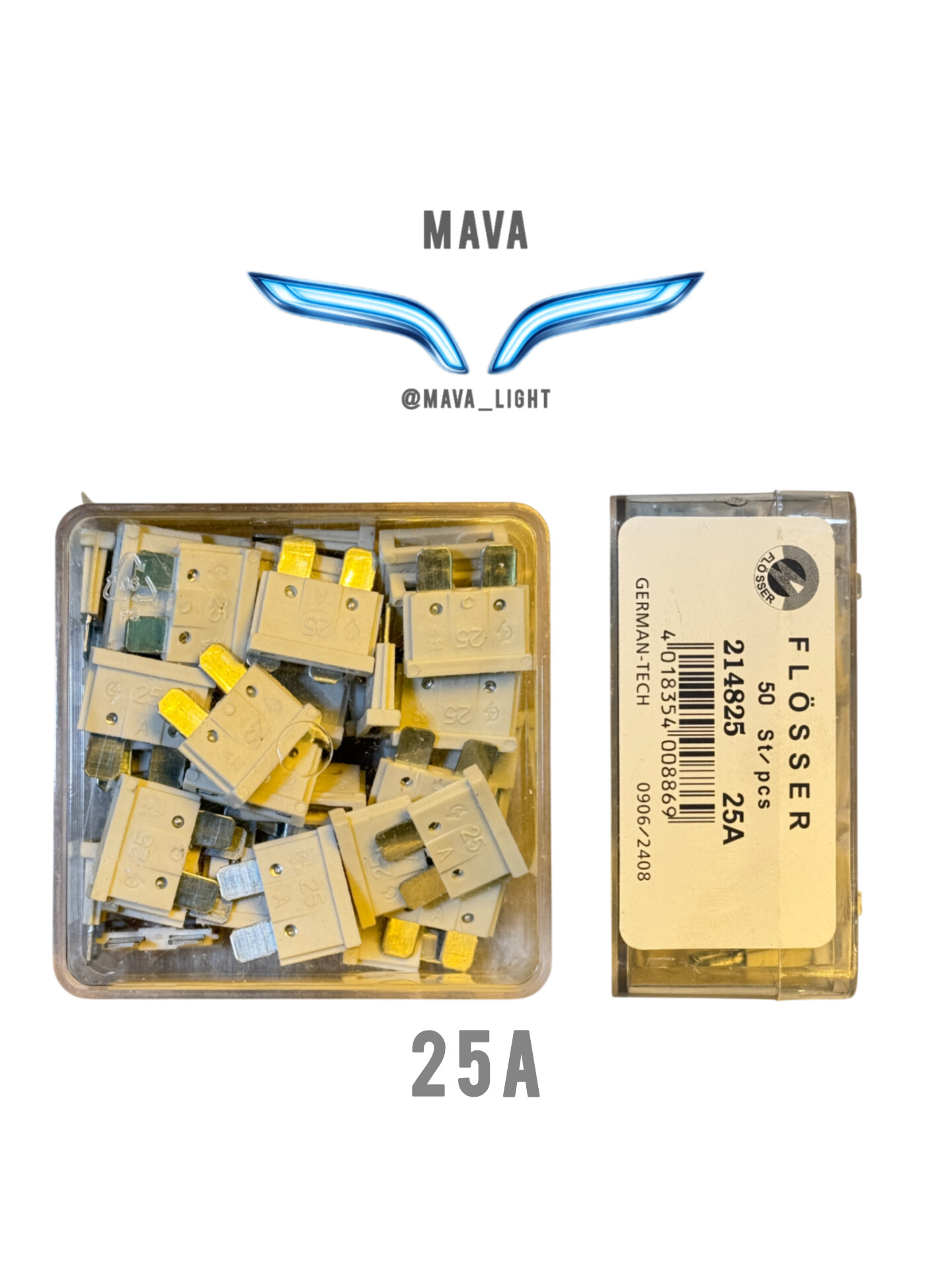 فیوز ۲۵ امپر خودرو پک ۵۰ عددی